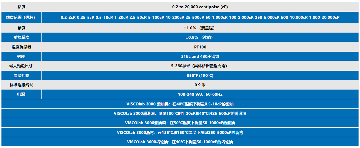 VISCOlab3000實驗室粘度計技術(shù)參數(shù):