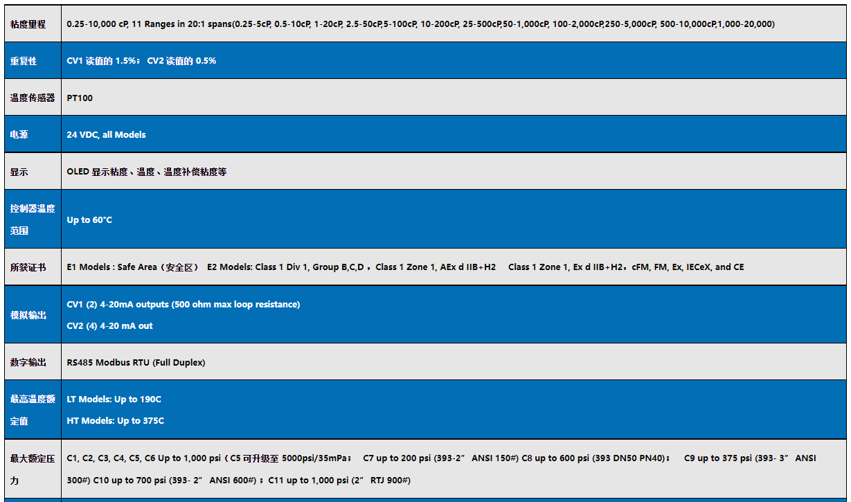 VISCOpro2100 粘度計規格參數: