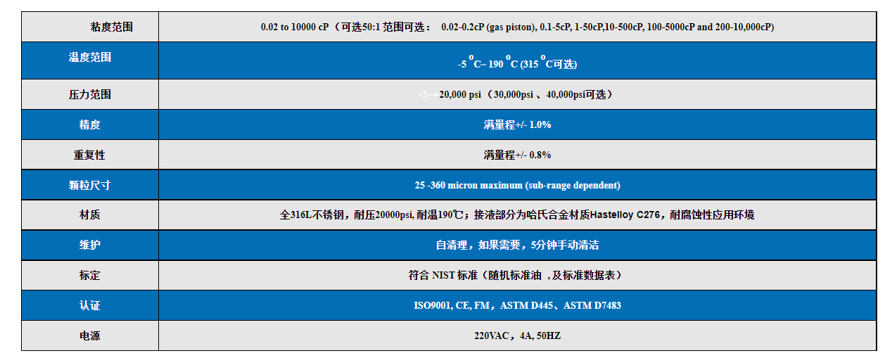 最寬的粘度分析范圍:0.02至 20000 cP