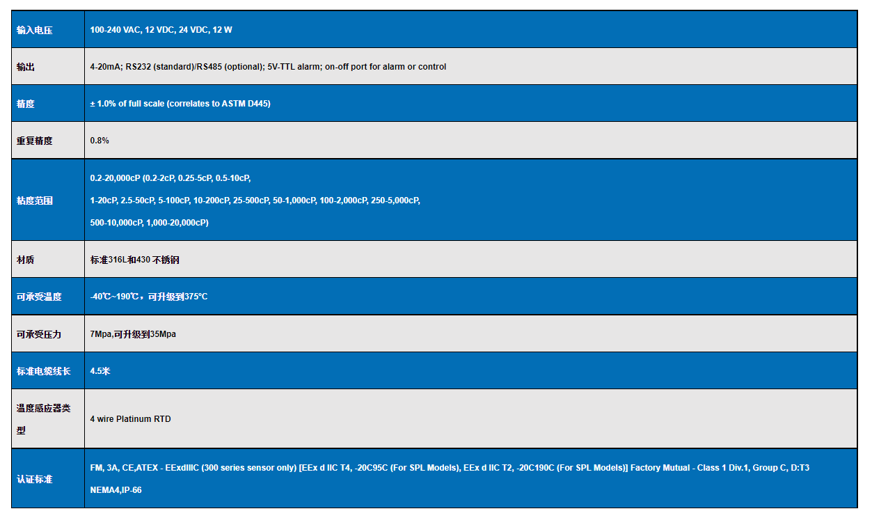 泰恩VISCOpro2000 在線粘度計規格參數: